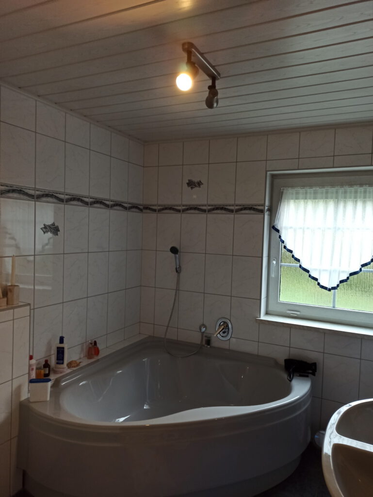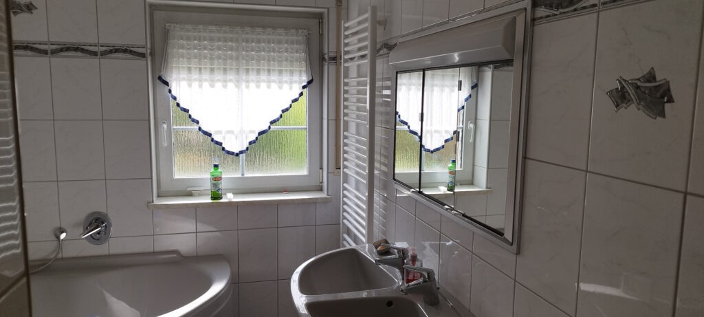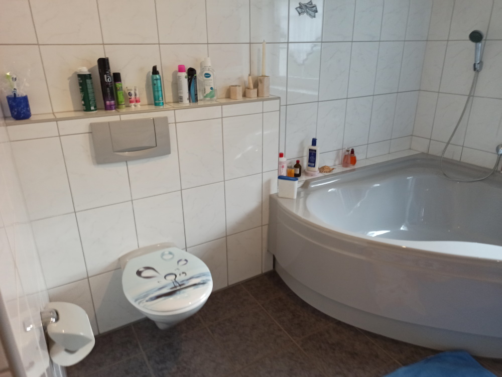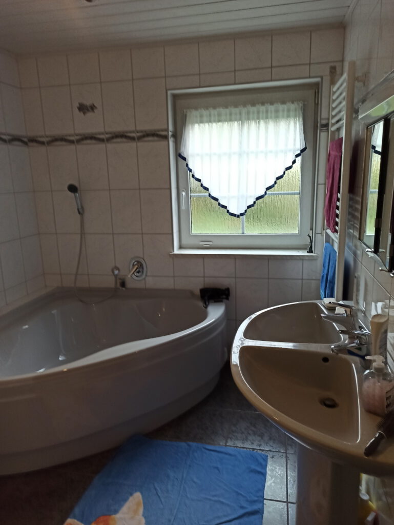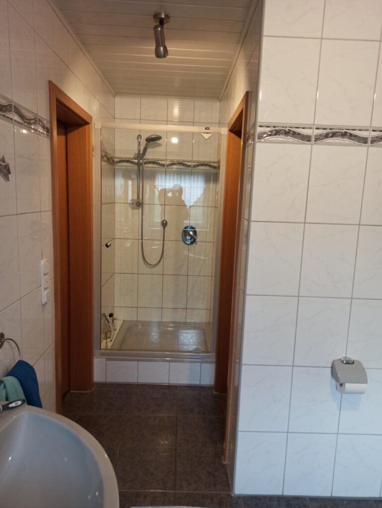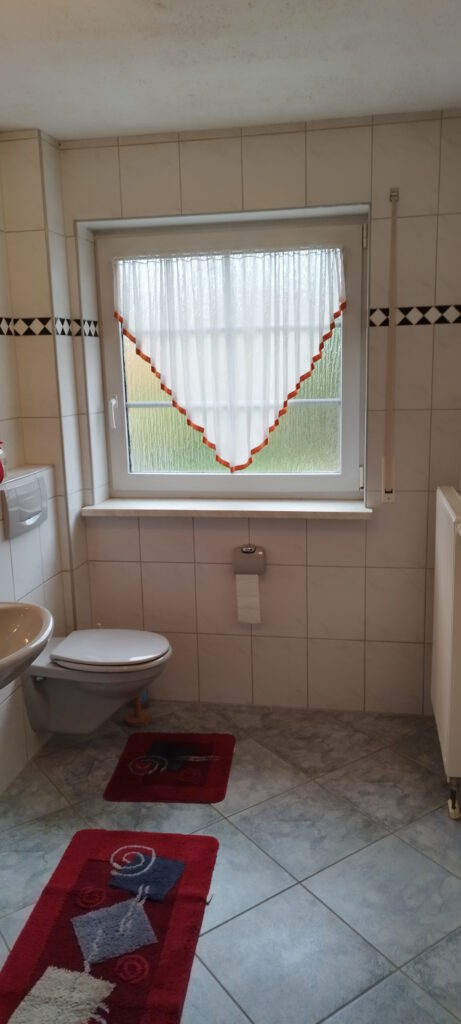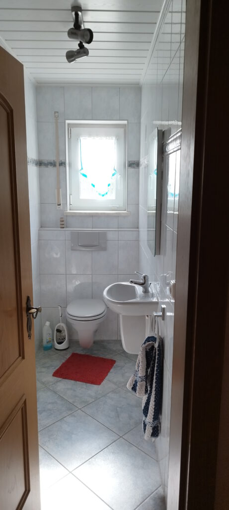 Neben dem Gästezimmer befindet sich ein weiteres Bad mit Fenster, Duscholux Dusche, Hänge-WC, Waschbecken mit Einhebelmischer, Fußbodenheizung incl. zusätzlichen Heizkörper.