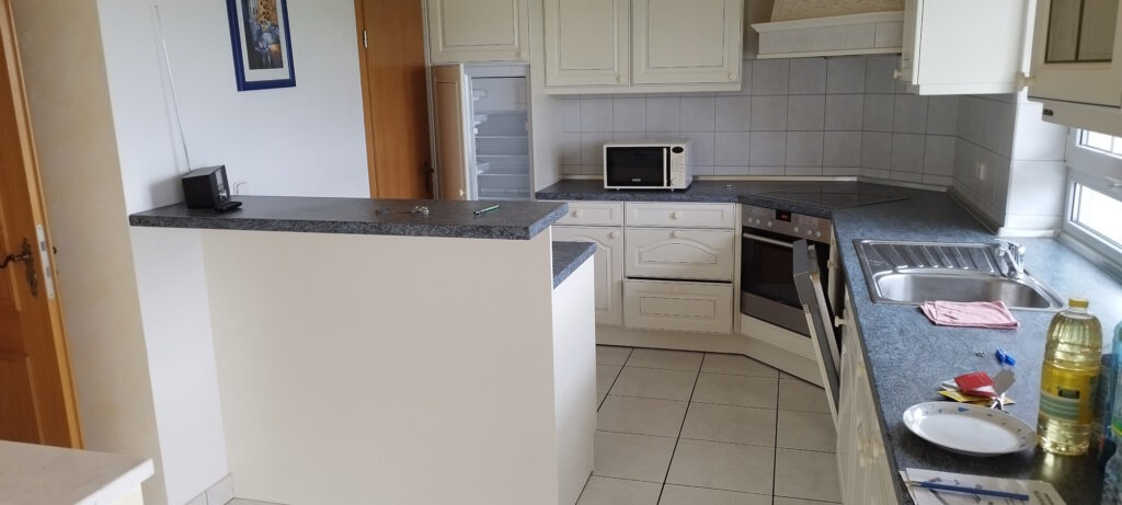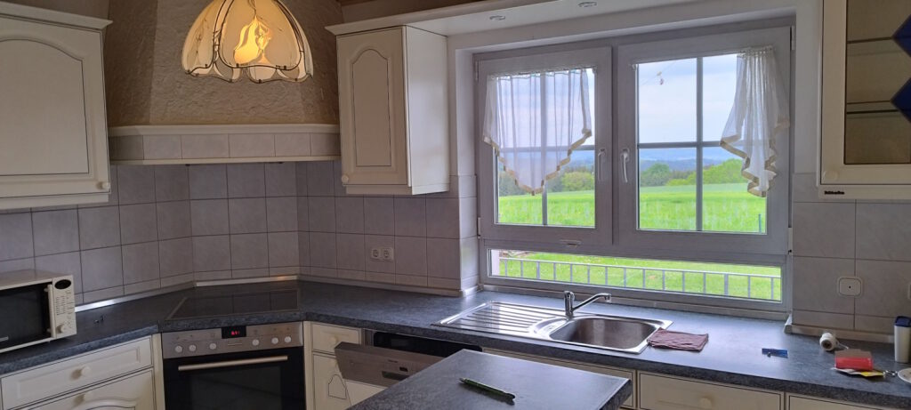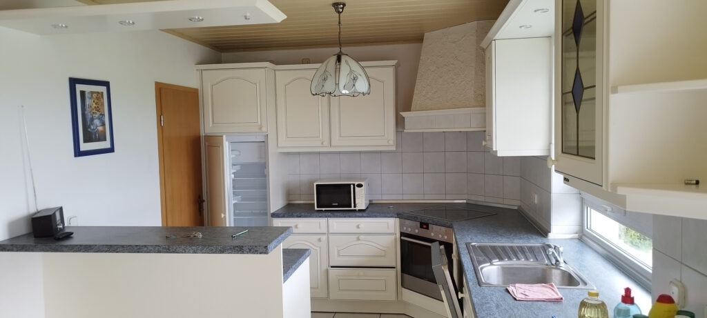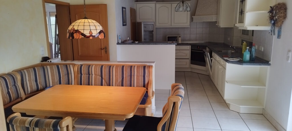 Miele Wohn- Essküche mit Tresen und sämtlichen Küchengeräten, Essecke – Terrassentüren und mit Fußbodenheizung ausgestattet.