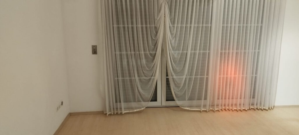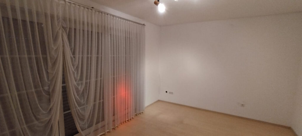 Der Boden ist mit hellem Laminat belegt.