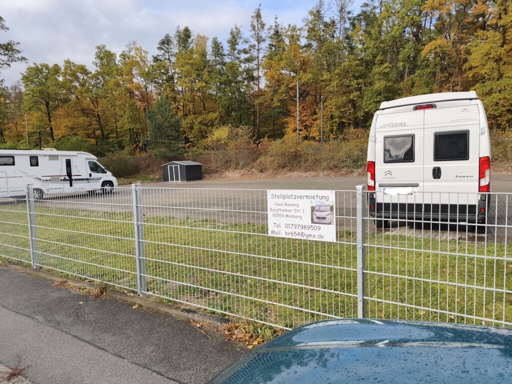 Der Preis für den Platz beträgt monatlich 50 Euro ohne Strom. Der Stellplatz ist auch leicht mit der S-Bahn zu erreichen und liegt in Mimberg bei Burgthann.